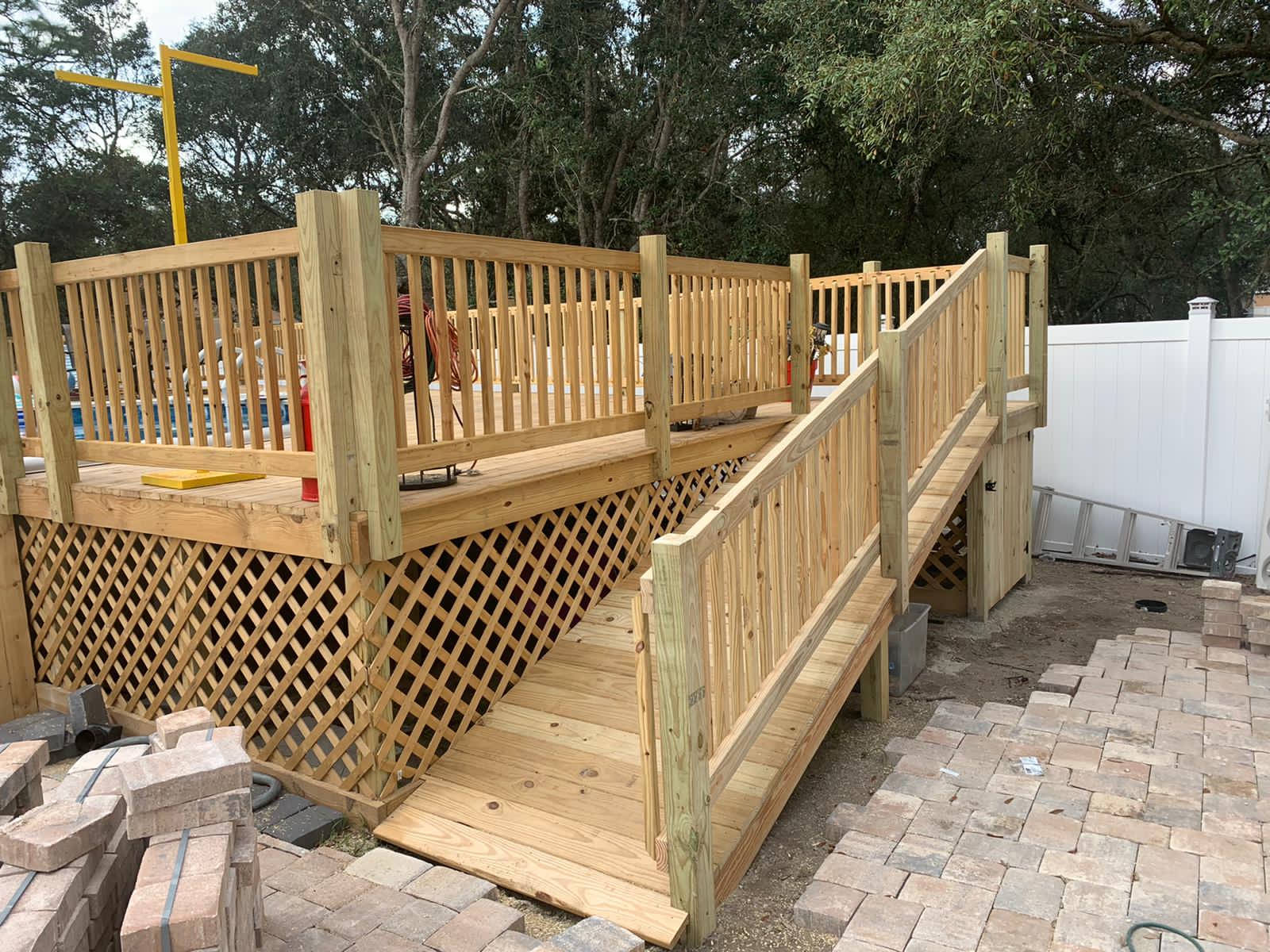 Aquí en Shinedeck utilizamos madera tratada a presión debido a que es resistente a la putrefacción y a los insectos. Además, es más asequible en comparación con otros materiales y está ampliamente disponible en los EE. UU. Lo usamos para construir los sistemas de soporte para plataformas porque se sostiene bien y, a menudo, está enmascarado por el piso de la plataforma.