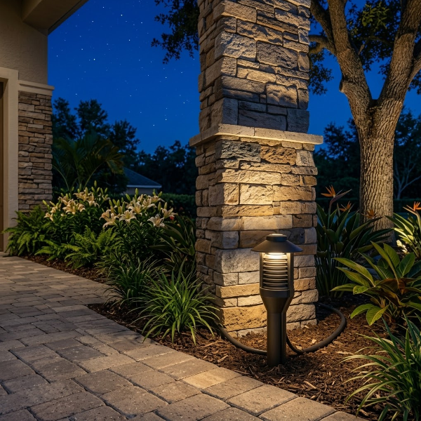Florida’s humidity and salt air require the best. We use solid brass and copper fixtures that are "marine-grade" and weather-sealed, ensuring your lighting system remains flawless despite heavy rains and intense heat.