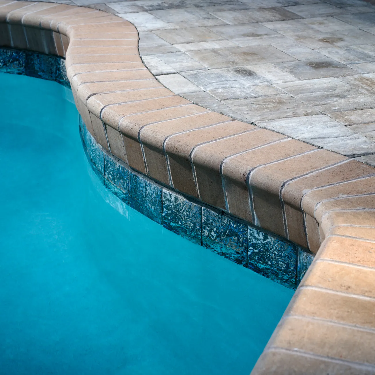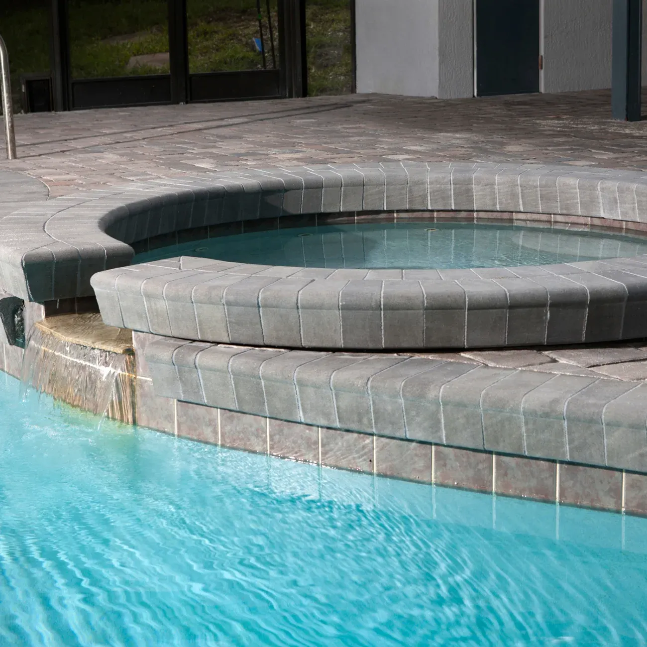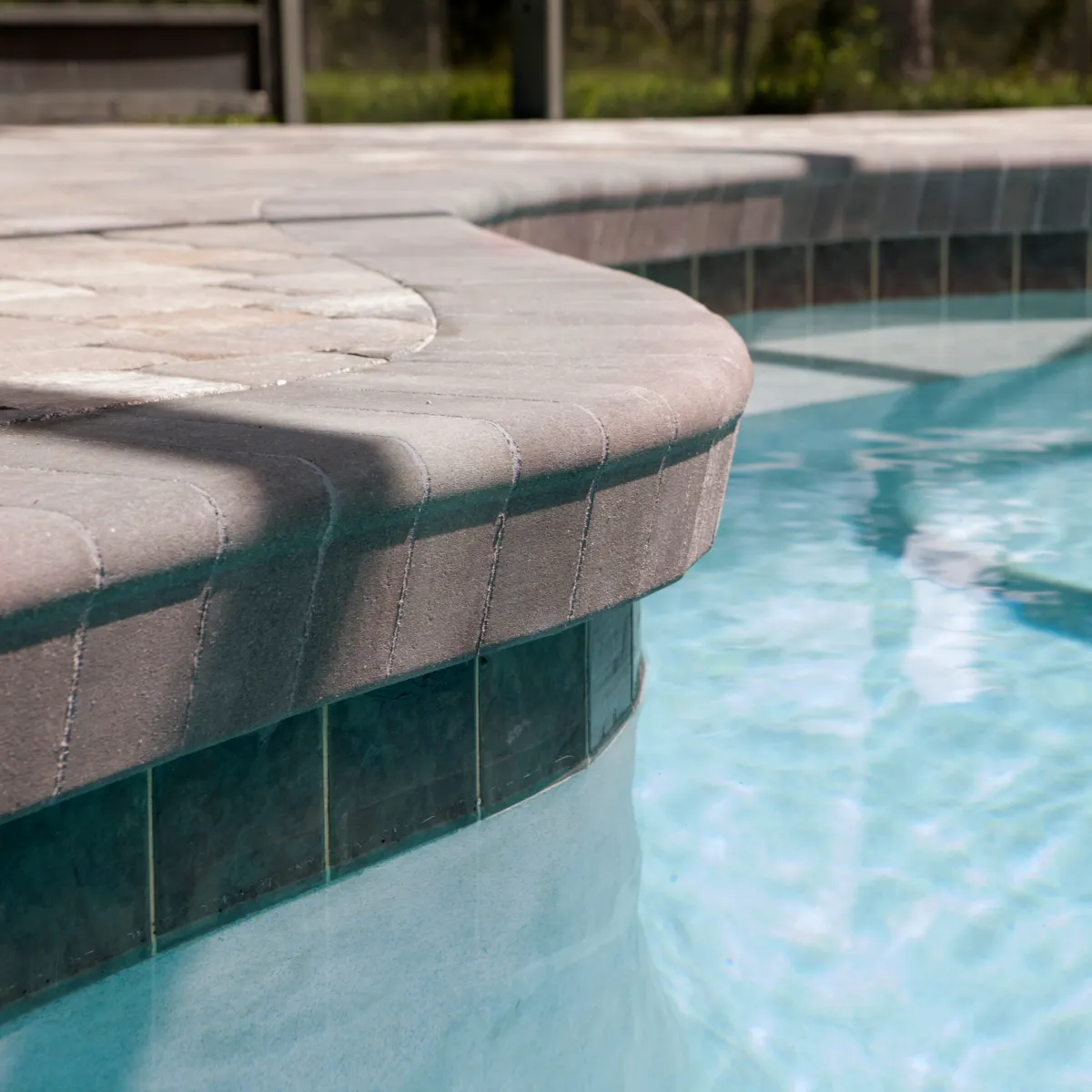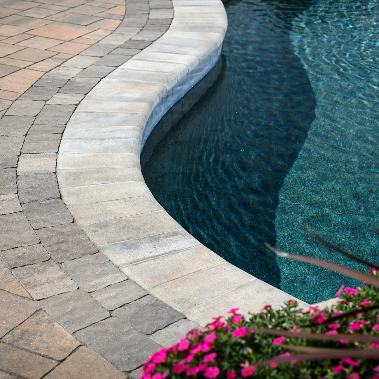 Fountainhead Coping allows your beautiful patio to integrate seamlessly with a pool. The variety of style options allow for a custom look complimenting the different paver options that are available. Fountainhead Coping is also versatile enough to function as an edge restraint for all our premium Belgard products.