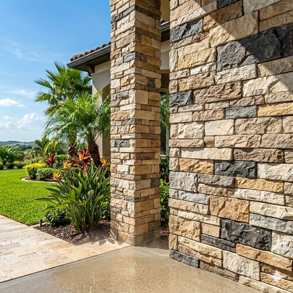 Our stone veneer is engineered to handle the intense Florida sun and humidity. It provides a protective, long-lasting barrier that maintains its vibrant color and structural integrity for decades with minimal maintenance.